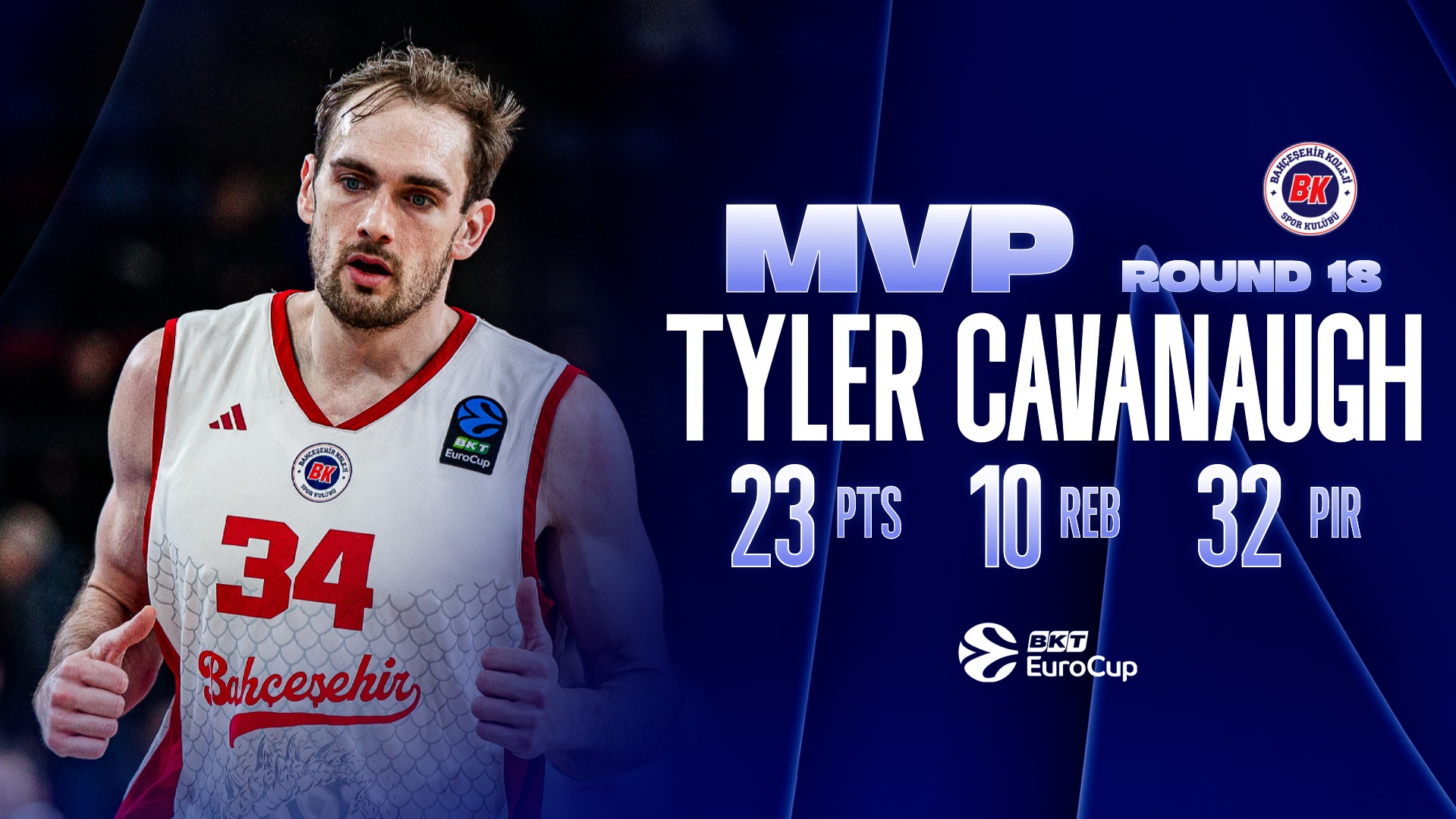 Tyler Cavanaugh delivered a commanding performance to headline Round 18, guiding Bahcesehir College Istanbul past Neptunas Klaipeda 86-91 on the road to clinch a bye in the BKT EuroCup Eighthfinals and earn the MVP of the Round honors.